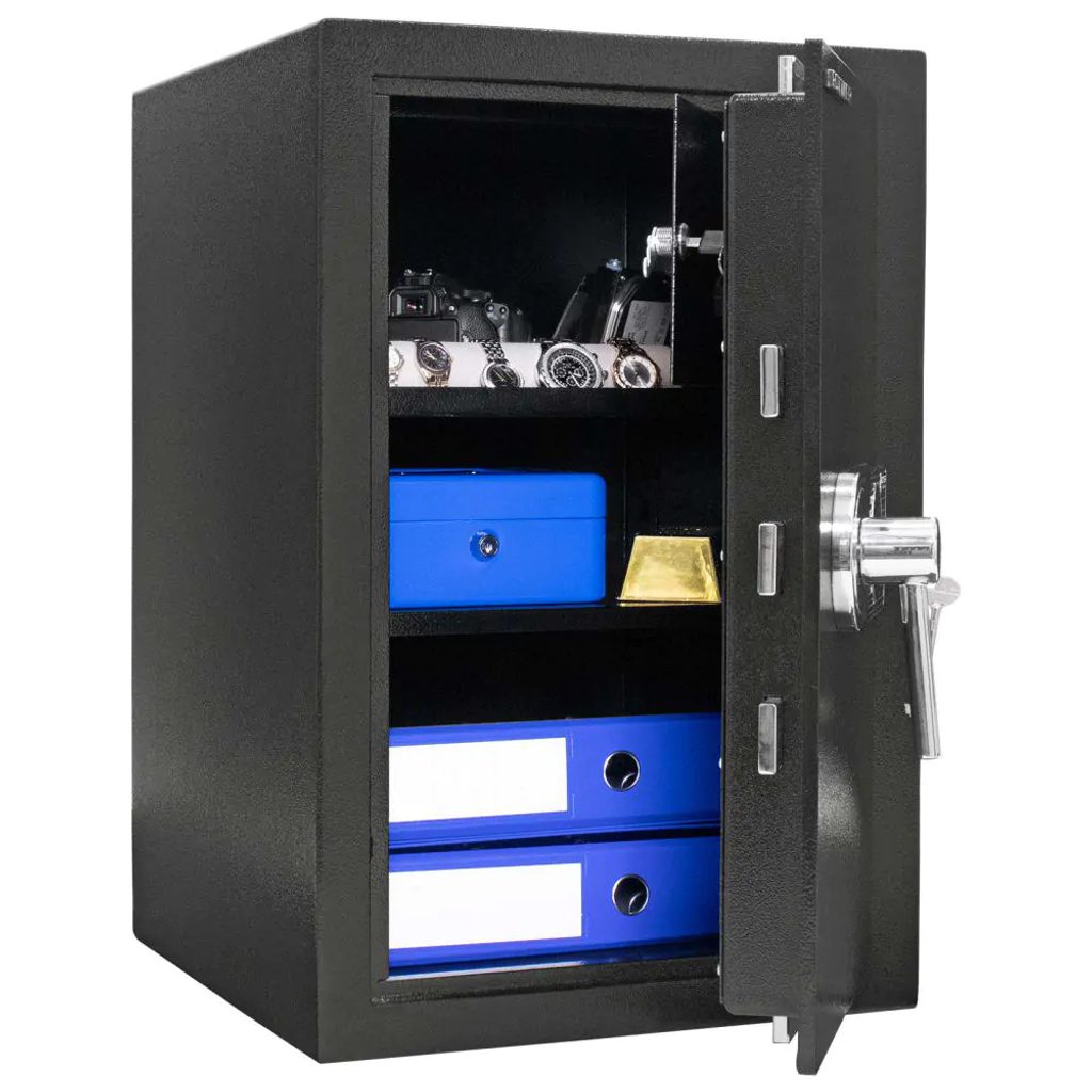 Kvalitní a spolehlivý trezor modelové řady Monaco nabízí bezpečný prostor pro vaše cennosti, dokumenty nebo šanony. Podle legislativy je možné v trezoru uschovat i krátké zbraně spolu s municí. Certifikovaný trezorový zámek dohromady s bezpečnostní třídou I zaručí potřebnou ochranu věcí uložených uvnitř. Po zavření dveří zajistí 3-stranný uzamykací mechanismus dokonalé uzavření prostoru. Vnitřek je doplněno poličkou, která rozdělí prostor podle vašich potřeb. S pořádným ukotvením nebude problém. Prostřednictvím připravených otvorů na ukotvení na spodní a zadní straně bude trezor pevně držet na místě. Kotvící materiál je součástí dodávky.