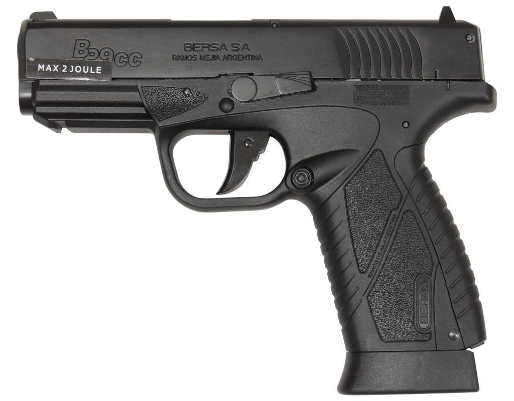 Vzduchová pistole Bersa BP9CC cal. 4,5mm je tvarově nejvěrnější kopií reálného modelu Bersa. Pistole je vybavena pojistkou pro zajištění proti nechtěnému výstřelu. Loga argentinské zbrojovky Bersa dokonce i na krabičce což podtrhuje její autentičnost. Zbraň je určena pouze na ocelové BB broky. Double Action - kohoutek se nemusí natahovat pro rychlou střelbu