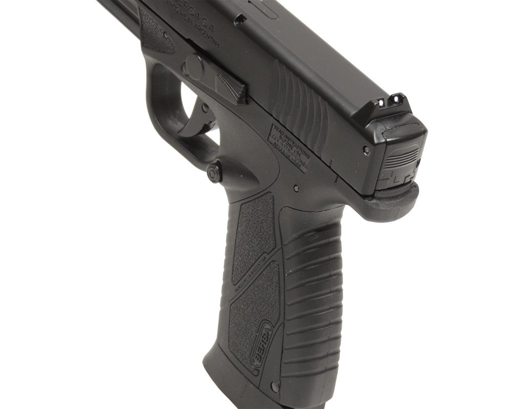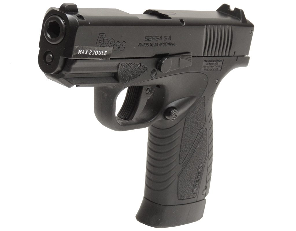 Vzduchová pistole Bersa BP9CC Blow Back cal. 4,5mm je tvarově nejvěrnější kopií reálného modelu Bersa. Pistole je vybavena pojistkou pro zajištění proti nechtěnému výstřelu. Loga argentinské zbrojovky Bersa dokonce i na krabičce což podtrhuje její autentičnost. Zbraň je určena pouze na ocelové BB broky. Blow-Back systém závěru umocňuje realistický vzhled při střelbě. Blow-Back navíc ulehčuje střelbu, natažením kohoutku po výstřelu.