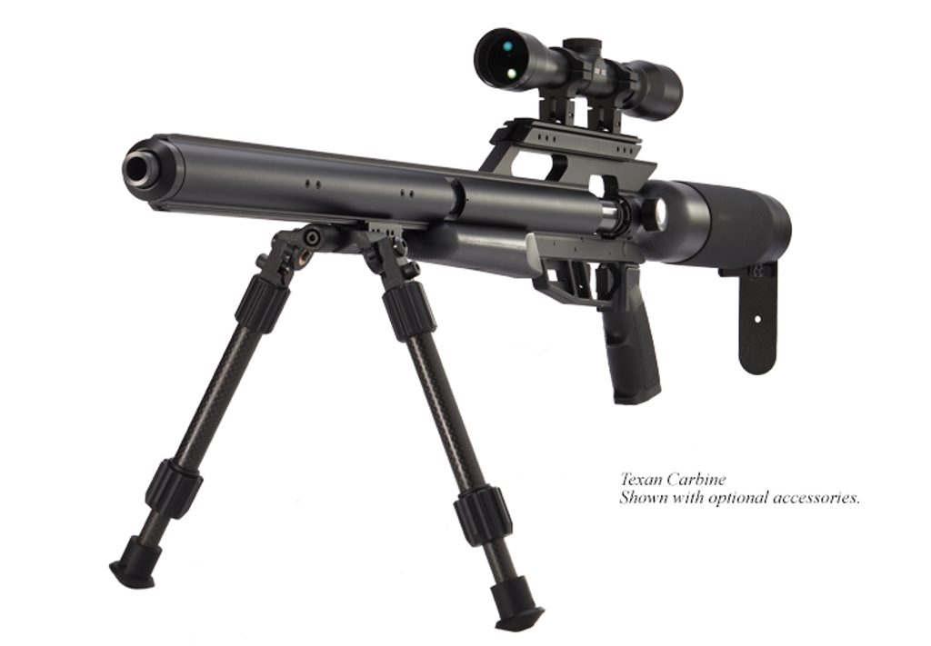 Vzduchovka AirForce Airguns Texan Carbine je produktem hrdé Texaské společnosti, která je známá svou výrobou velkorážních PCP větrovek. Texan Carbine používá hlaveň od společnosti Lothar-Walther. Tento model je vybaven kevlarovou kartuší, která je umístěna v prostoru pažby. Veškerá síla a přesnost, ale v kompaktnějším balení pro snadné manévrování v těžkých křovinatých a hůře dostupných prostorech.