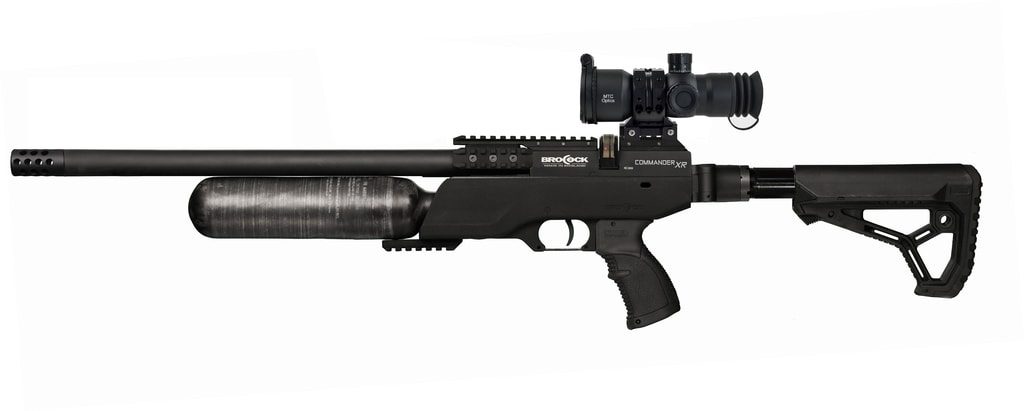 Taktická vzduchovka BRK (Brocock) Commander Magnum HiLite XR v černém provedení s kevlarovou kartuší a sklopnou pažbou s pistolovým úchopem těží také ze vzájemné spolupráce (Daystate a BRK). BRK Commander HiLite XR BRK má vylepšený patentovaný systém „Slingshot Hammer“, který zajišťuje lepší dávkování vzduchu a nižší spotřebu. Tento systém spolu s regulátorem tlaku nizozemského výrobce Huma a vylepšuje konzistenci střel vzduchovka je daleko přesnější jako konkurence.