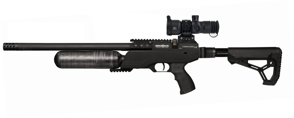Taktická vzduchovka BRK (Brocock) Commander HiLite XR v černém provedení s kevlarovou kartuší a sklopnou pažbou s pistolovým úchopem těží také ze vzájemné spolupráce (Daystate a BRK). BRK Commander HiLite XR Brocock má vylepšený patentovaný systém „Slingshot Hammer“, který zajišťuje lepší dávkování vzduchu a nižší spotřebu. Tento systém spolu s regulátorem tlaku nizozemského výrobce Huma a vylepšuje konzistenci střel vzduchovka je daleko přesnější jako konkurence.