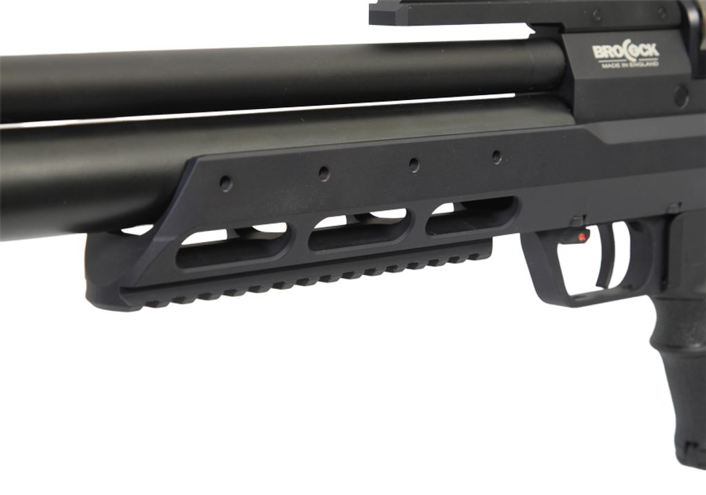 U nás dostanete PCP větrovky od firmy Brocock/BRK vybavené 3 ks weaver lišty, které jsou již v ceně zbraně (nejedná se o standarní výbavu). Dvě weaver lišty jsou určeny pro instalaci optických zařízení a jedna na spodní straně předpažbí slouží pro instalaci příslušenství (bi-pod, svítilna, taktická rukojeť, laser).