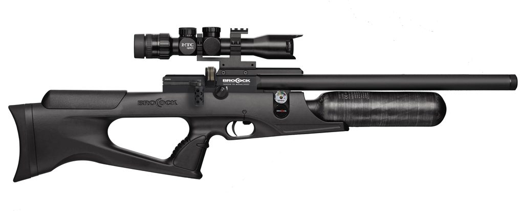Spoušt vzduchovky nastavitelná a v přední části je umístěná pojistka. Přebíjení vzduchovky je pomocí boční páčky – Side Lever Action. Toto řešení nám přijde pohodlnější než u předchozí verze modelu BRK/Brocock Bantam, který měl přebíjení pomocí přímotažného závěru. Montážní lišta pro puškohled, případně kolimátor je 11mm, montážní lišta weaver je umístěná v přední části pažby pod kartuší. Vzduchovka je vybavená dvěma manometry. Jeden ukazuje tlak v kartuši a druhý tlak regulátoru. Nastavitelná lícnice z příjemného a nestudeného materiálu a nastavitelná botka se přizpůsobí každému střelci.