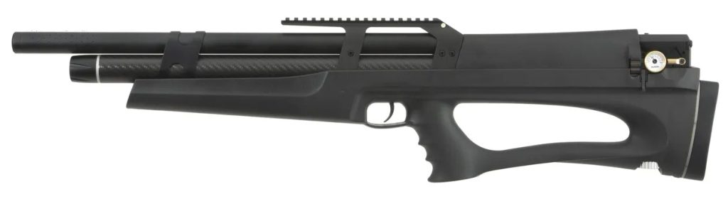 Vzduchovka Huben K 5,5mm je jediný spolehlivý semiauto bullpup v naší nabídce. Huben K1 je větrovka (PCP) v provedení semiauto, to znamená že vzduchovku nemusíte po každém výstřelu znovu natahovat. Huben K1 je netradiční Bullpup, který je dodáván v černé plastové pažbě, která je tzv. ambidextrous a je vhodná jak pro praváka, tak i pro leváka. Vysokopevnostní kartuše titan-dural s povrchovou úpravou "kevlar" má objem 292cm3 a plní se pomocí přiloženého quickfillu až do tlaku 350BAR. Quickfill však nemá závit a pro plnění pomocí tlakové láhve nebo pumpy je potřeba ještě rychlospojka.