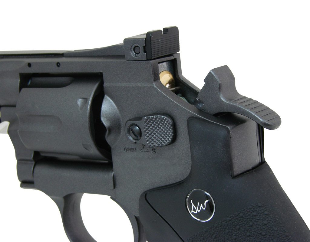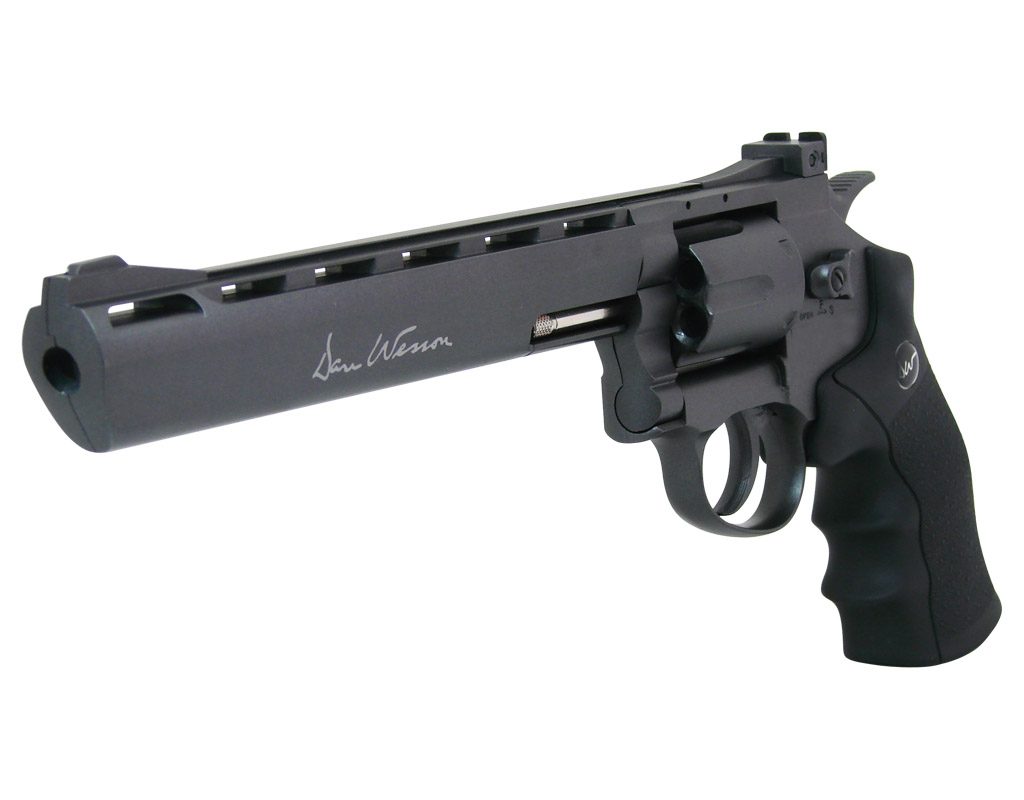 Vzduchový revolver Dan Wesson 8" cal. 4,5 mm je velice věrnou kopíí reálného revolveru Dan Wesson 8" se všemi detaily včetně rychlonabíječe s náboji. Provoz zajišťují malé 12g CO2 bombičky. Revolver nabízí masivní celokovové provedení s kvalitním dílenským zpracováním. Revolver je vyráběn ná základě zakoupené licence Dan Wesson, každá zbraň nese podpis Daniela B. Wessona spoluzakladatele firmy Smith & Wesson. Revolver je vybaven montážní lištou 11mm a balení obsahuje i redukci na lištu 22mm (weaver, picatinny). Součástí balení je rychlonabíječ a 6ks nábojnic.