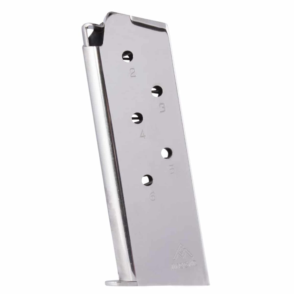 Zásobník od společnosti Mec-Gar pro pistole typu 1911 Officer compact, pro ráži .45 ACP, 6 ran, niklovaný. Vysoká spolehlivost.