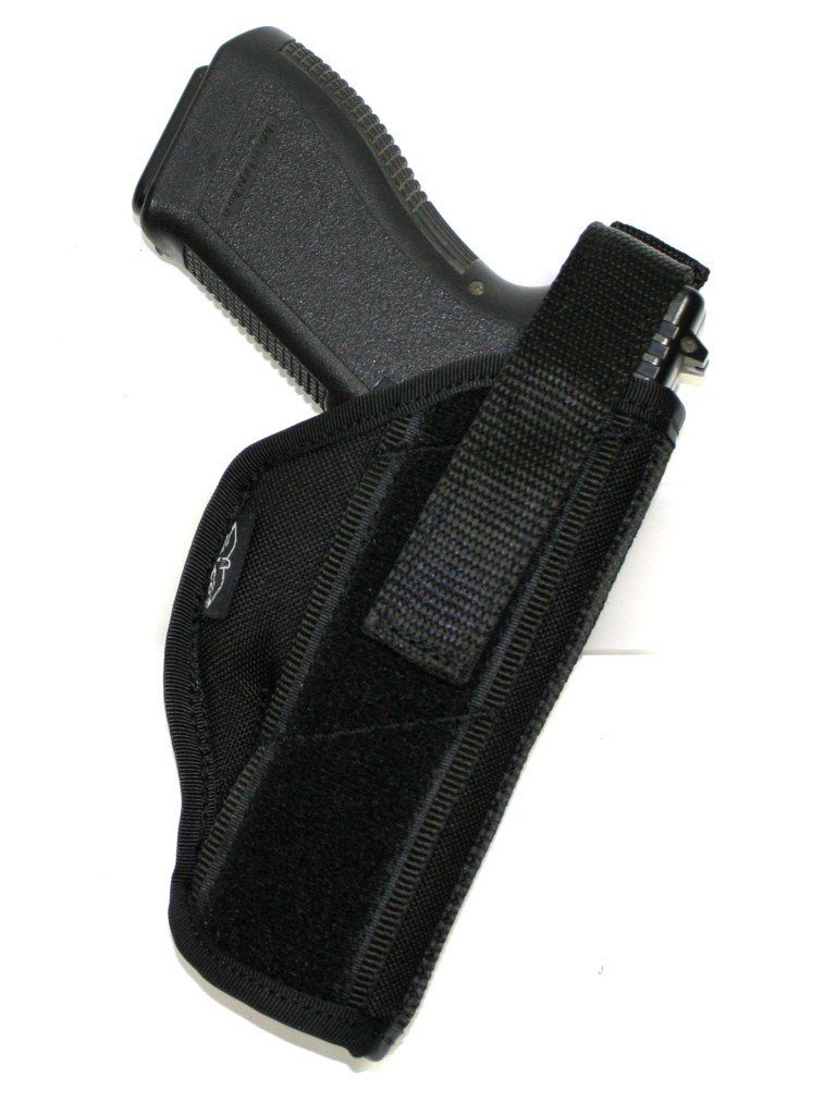 Pouzdro má na zadní a přední straně úchyty na opasek, Což umožňuje nošení na pravé i levé straně těla. Pouzdro nastavitelné a odnímatelné rýchloodepínání pro co nejlepší bezpečnost. Celá hlaveň je chráněna.